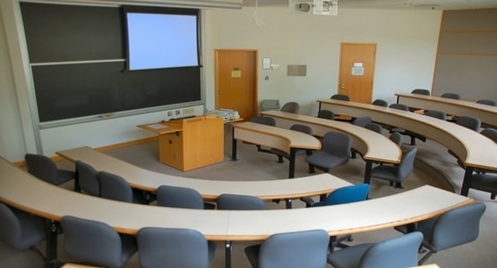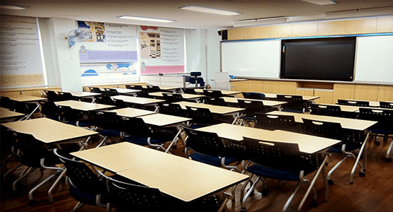 gallery-style classrooms, ensuring that students have a clear view of the instructor while