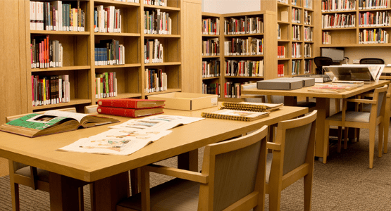 tables, and comfortable seating that encourage focused study and reading.